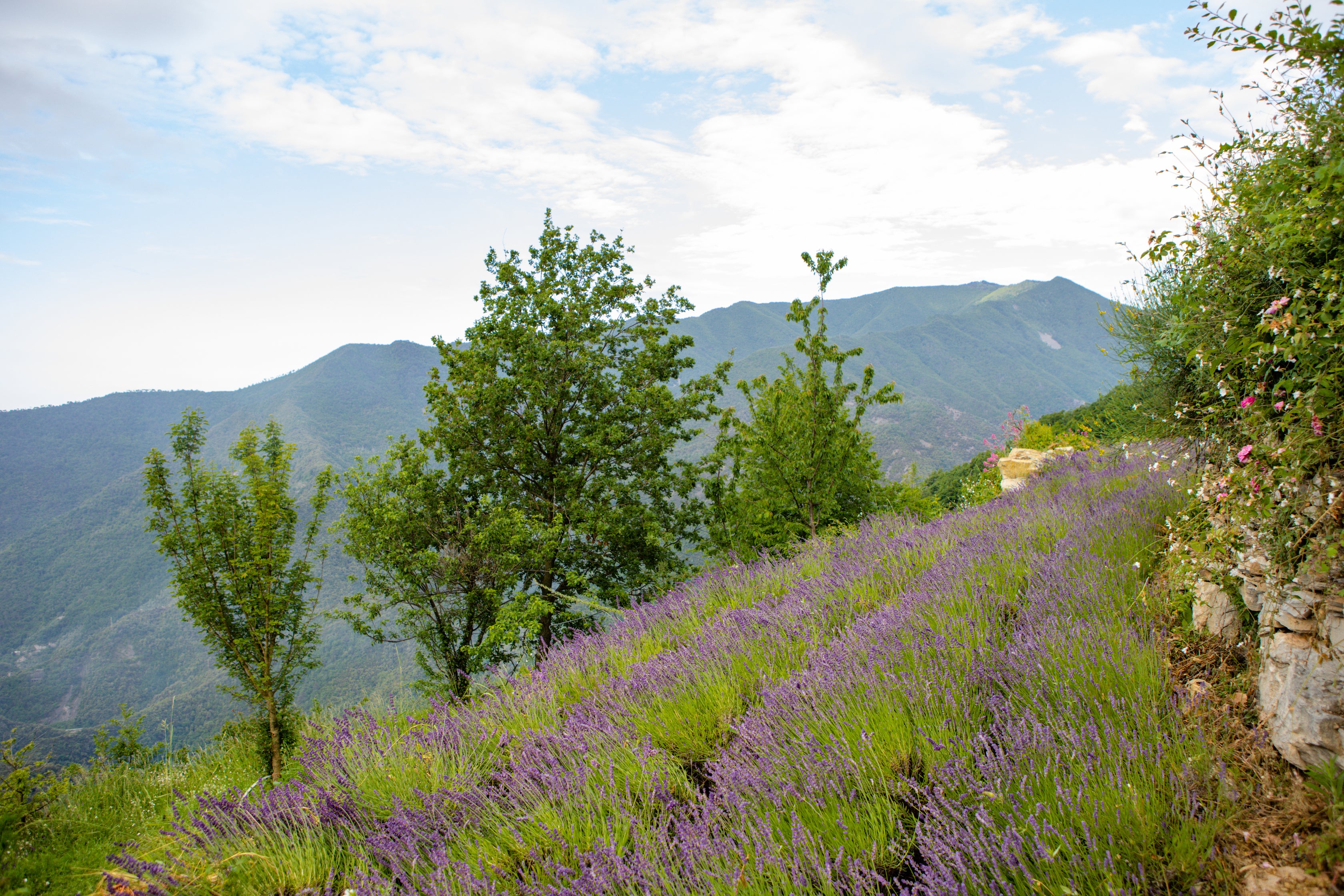 Glori Superiore è un pugno di case abbandonate a 750 metri di quota in Alta Valle Argentina. E’ un territorio bellissimo ma difficile: un mondo verticale a cui si accede attraverso strette strade e ripide mulattiere. nel 2019 ho comprato più di 4mila metri di terreno abbandonato da 50anni. dopo 6 mesi di durissimo lavoro sono riuscito a prepararlo per la coltivazione del nostro fiore all’occhiello: la Lavanda Officinalis Imperia, che qui chiamano “Sciarmentan” e che a queste altezze cresce particolarmente bene.
